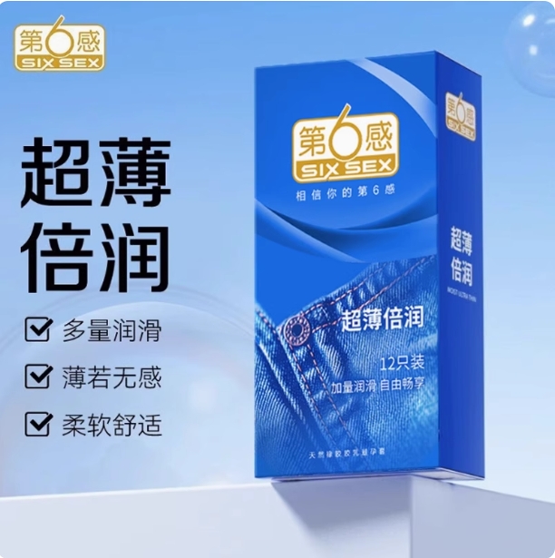 第6感 天然橡胶胶乳男用避孕套超薄倍润 12只装